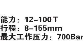 | 型號 | 行程(mm) | 噸位(T) | 本體高度(mm) | 外徑(mm) | 有效面積c㎡ | 油缸容積(cm³) | 頂頭直徑(mm) | 中空直徑(mm) | 重量(kg) |