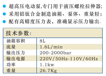 產(chǎn)品名稱:拉伸器專用液壓電動(dòng)泵